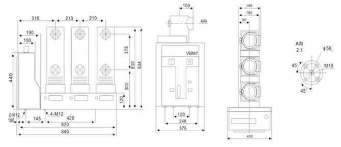 VS1-12型侧装式(VBM7)真空路器采用固定式安装,主要用于固定式开关柜,该断中器既可单独使用,又可用于环网供电、箱式变或各种非标供电系统。 |